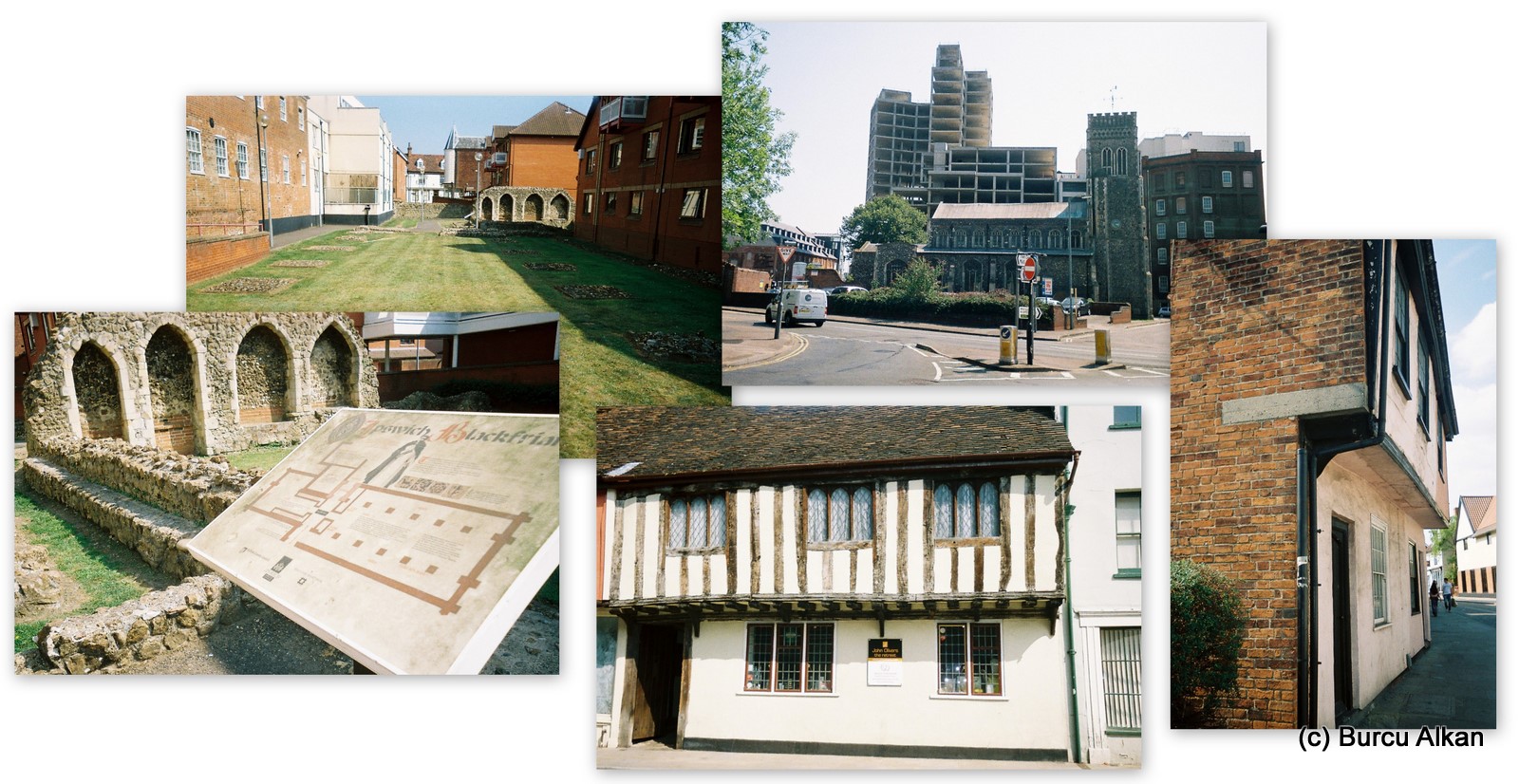Marinadan çıkıp yeniden merkeze doğru yöneldiğimizde ufak bir hazine bulduğumuzu söyleyebilirim. Katoliklerin Dominikan mezhebi olan, İngiltere’de Blackfriar’lar olarak geçen grubun 13. yüzyılda Ipswich’e gelerek inşa ettikleri manastırın kalıntıları nerdeyse şehrin göbeğinde. Ama sadece, bulundukları sokakların kesiştiği noktaya belli bir yönden gelirseniz karşınıza çıkıyorlar. Diğer açılardan bakıldığında var olduklarını bile bilmezsiniz. O yüzden haritayla gidilip bölge en az bir tur tavaf edilmeli.