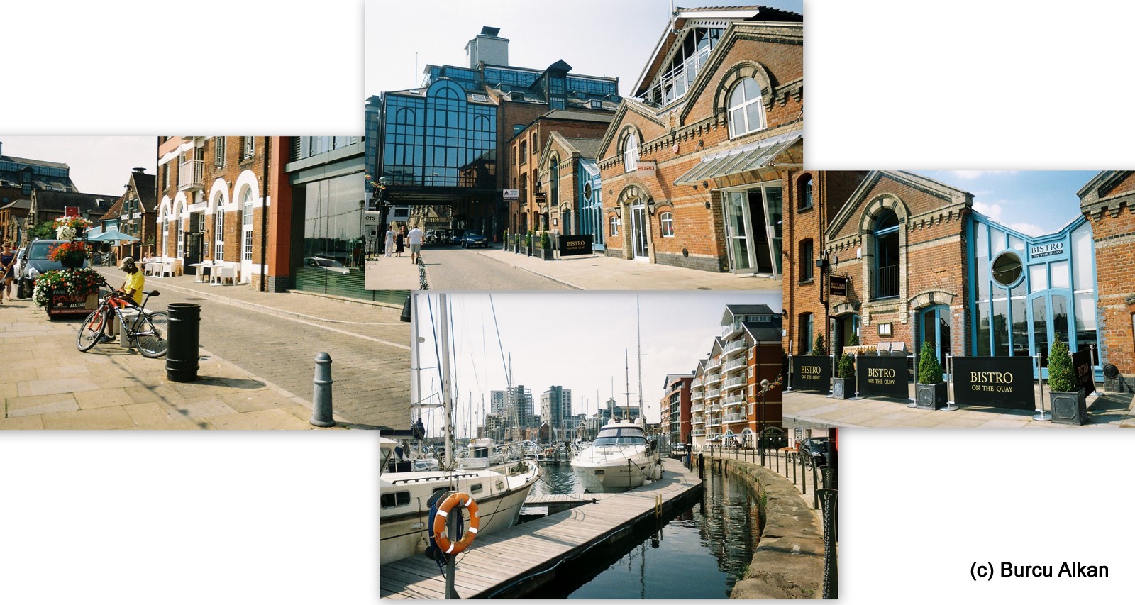 Sahile kıyısı olan bir şehirde mutlaka denizi görmek isterim. Bu nedenle, Ipswich’in marinasına doğru yöneldik. Genel olarak sıkıcı bir bölge: ikinci kalite bir üniversitenin bir fakültesi, bir iki adet pek de özel olmayan cafe… Yalnız, civarın en eski pub’larından biri ile tarihi deniz ticaretinin önemli bir binası da burada bulunuyor. Arada modern yapıların ya da inşaatların arasına sıkışmış tarihi binalar da mevcut. Özellikle yarım kalmış inşaatlar ise ekonomik krizin İngiltere’yi ne kadar ciddi vurduğunun göstergesi.