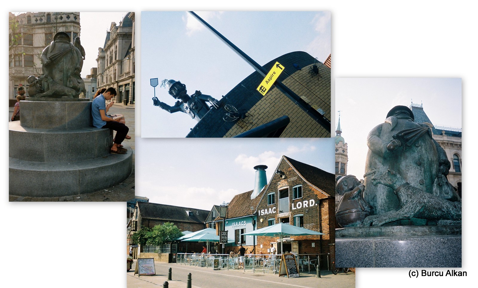 Önce Ipswich şehir merkezinde dolandık. Burada komik bir iki heykelle karşılaştım. Sonradan öğrendim ki, bu heykellerden şişko ve gözlüklü tip Ipswich’li karikatürist Carl Giles’ın ünlü “Grandma” karakteriymiş. Sinek avlayan general tiplemesinin ise sanatçısını bilmiyorum ama üzerinde bulunduğu binanın bir tuvalet olduğunu söylemeliyim.
