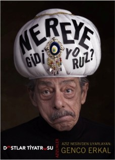 Tiyatro sezonunun açılmasıyla bana gün doğdu ve hemen dün akşam Genco Erkal’ın “Nereye Gidiyoruz?” oyunu ile sezonumu açmış oldum. Performans Aziz Nesin’in farklı metinlerinden uyarlanarak oluşturulmuş. Erkal 1,5 saat boyunca tek başına okuyor, söylüyor, tırmanıyor, zıplıyor… çok iyi bir enerjiyle memleket nereye gidiyor diye soruyor: Gençler vapur Karşıyaka’ya gidiyor da… biz nereye gidiyoruz?