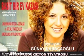 Araya bir sürü başka yazı aldık. Halbuki haftalar önce Günay Karacaoğlu’nun Basit Bir Ev Kazası İzmir’deydi ve bir arkadaşım yeni yıl hediyesi olarak bana bilet almıştı. O günden beri ben bu yazıyı kafamda defalarca yazdım, kaleme –pardon- klavyeye dökmek ancak kısmet oldu. Karacaoğlu’nun enerjisini çok beğeniyorum; çok iyi, pozitif ve eğlenceli bir sahne performansı var. Basit Bir Ev Kazası’nda da bunu net bir şekilde görmek mümkün, ama bu oyunda oyuncunun sahne performansından ötesi ayrıca önemli.Basit Bir Ev Kazası domestik alana sıkışmış kadının travmasının komedisi. Kabul ediyorum, kendi içinde bir çelişki ile karşı karşıyayız. Toplumsal beklentilerden dolayı, normlaştığı için yapılagelen evlilikler sonucunda kadının varolma alanının hiçe sayıldığı ve hayatının sadece başkaları söz konusu olduğunda anlam kazandığı bir gerçekliğin komikleştirilmiş hikayesi… Aslında böyle söylendiğinde kulağa çok da komik gelmiyor. Hele de yaşanan çok ciddi travmaların, sadece birer “basit ev kazası” olarak görülmesi söz konusu kadın hayatlarının ne kadar değersiz olduğunun bir ifadesi… tabii anlayana…